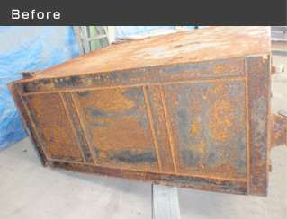 大抵の形状の物は加工できますが、クレーンで吊り上げることが難しい物や特殊な形で外からブラスト掃射を当てられない物など、稀に加工ができない場合もございます。 特殊な形状の物は、お手数ですが事前にご相談ください。